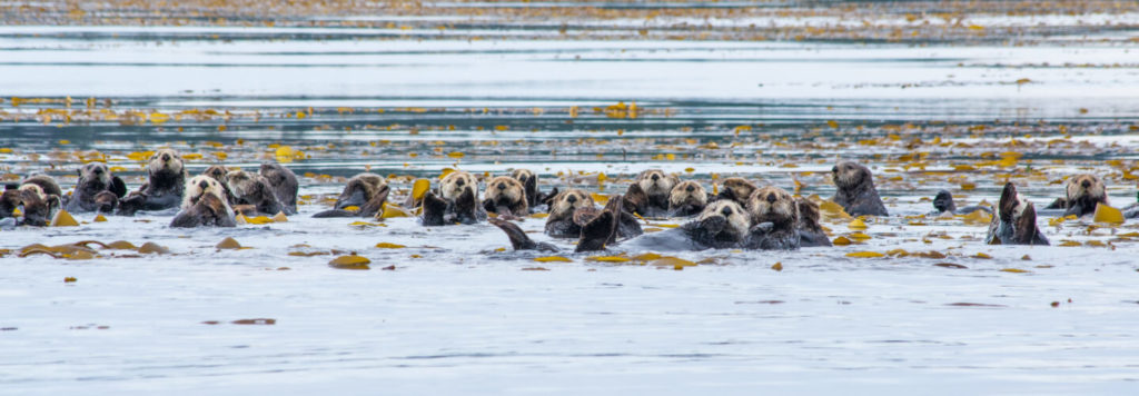 The sea otter is the heaviest member of the weasel family but among the smallest of marine mammals. Unlike most marine mammals, the sea otter’s primary form of insulation is an exceptionally thick coat of fur, the densest in the animal kingdom. Similarly, the coastal brown bear is the largest distinct subspecies of brown bears. It is medium-hued, typically not as dark as most forms from eastern Asia, but distinctly darker than grizzly bears. The brown bear is often described as nocturnal. However, it frequently seems to peak in activity in the morning and early evening hours.