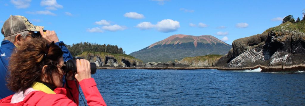 Watch the birds from the boat’s expansive and unobstructed viewing platforms with commentary and guidance from our expert, certified naturalist guide. Your knowledgeable naturalist will interpret the abundant wildlife, landscape, and local history. We’ll provide you with guides on the animals you can expect to see and give you access to Coast-Guard recommended marine binoculars so you can see the birds up close. The 20-mile trip to St. Lazaria Island allows us to appreciate the idyllic landscapes and spot other wildlife in the area’s many ecosystems.